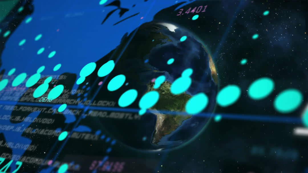 Animation depicts dynamic digital data flowing over a globe, representing global communication and technological connections. Ideal for illustrating concepts like global networking, data visualization, and technological advancements. Suitable for use in tech-oriented presentations, digital advertising, or educational content highlighting worldwide connectivity.