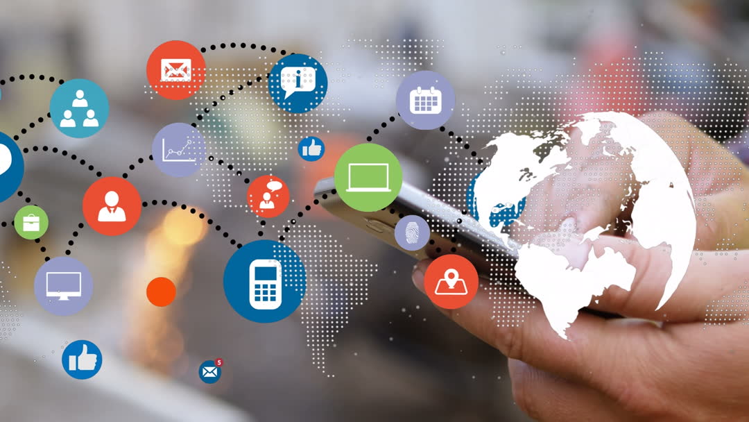 Illustrating global connectivity, this video featuring a smartphone and digital icons represents the dynamic nature of digital communication and business innovation. With elements showcasing AI-driven data processing and technology unity, it is ideal for illustrating articles or presentations on technological advancements, global business strategies, and innovative communication techniques.