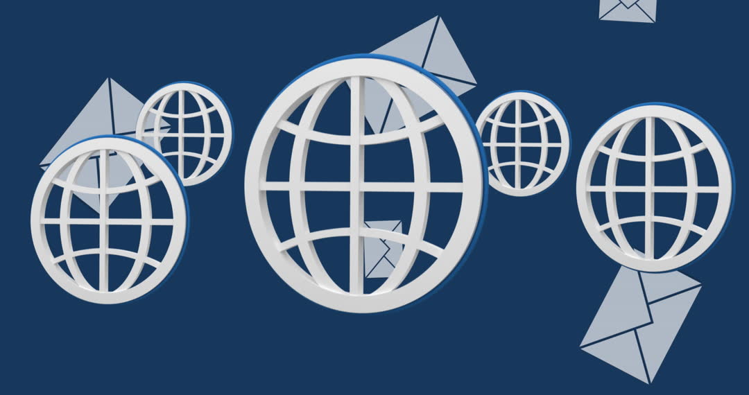 Globes and envelopes symbolize the concept of worldwide digital communication, making it suitable for technology articles, marketing materials for communication platforms, or educational use on global connectivity topics.