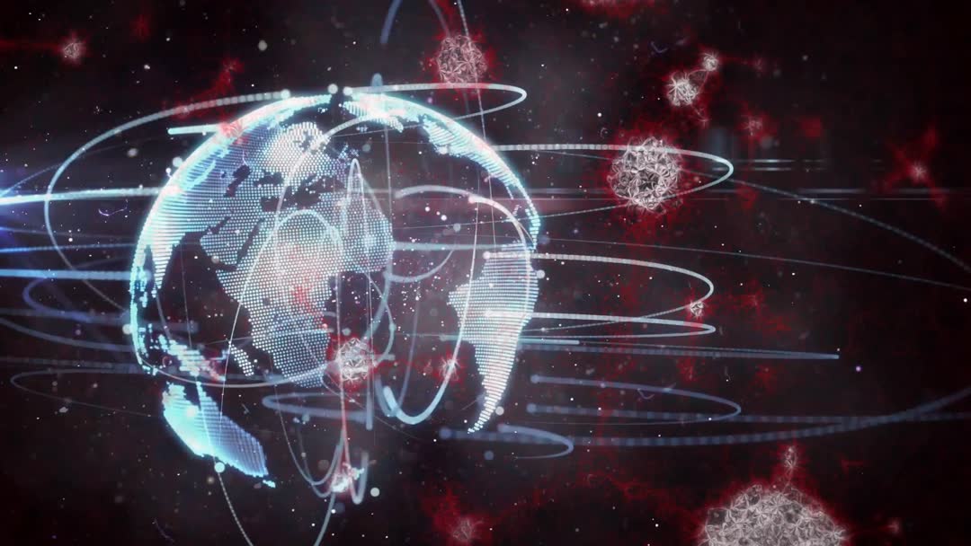Representation of interconnected global networks illustrating data spread surrounded by viral elements. Ideal for uses highlighting worldwide data transactions, digital communication technologies, and innovations within cyber platforms. Suitable for technology articles, cybersecurity resources, and global computing visualizations.