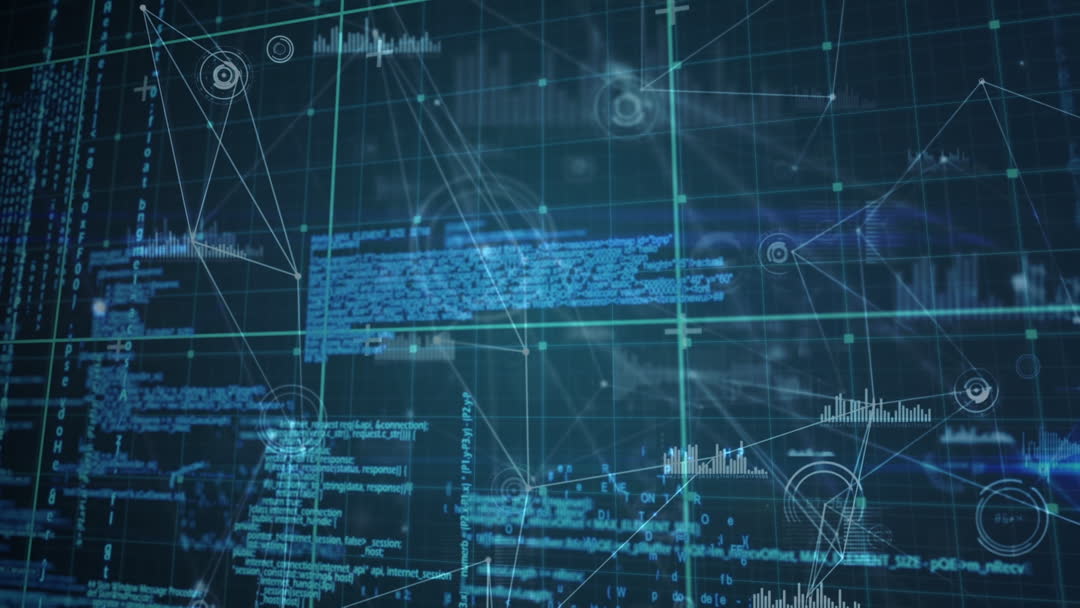 Animation showcases a complex interplay of data and connectivity concepts. Highlights technological advancements in digital communication. Suitable for illustrating topics on global networks, big data, programming, or cybersecurity presentations.