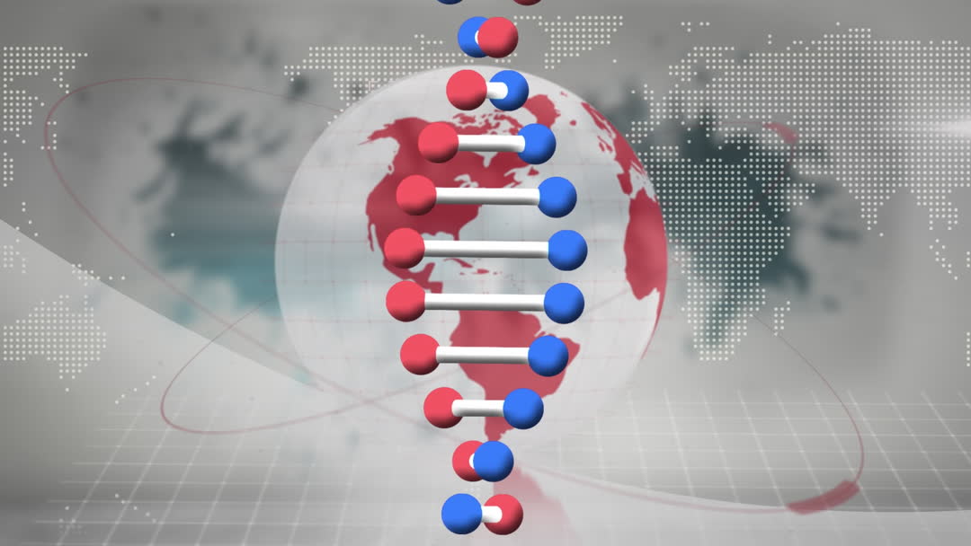 - Global DNA Strand Representation with Rotating Globe Iconography