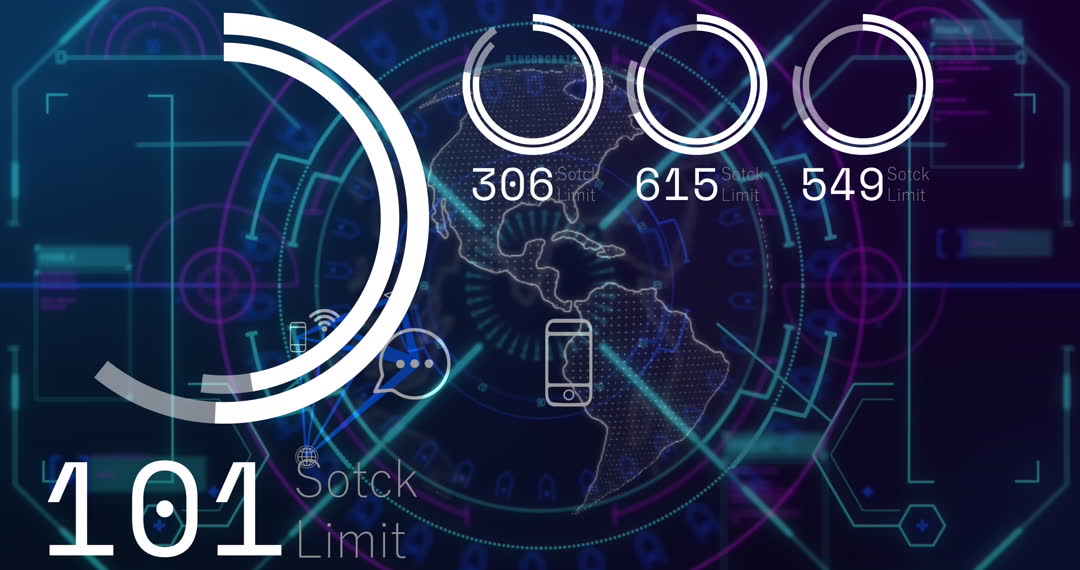 This vibrant, animated graphic showcases stock market data processing over a digital interface featuring a spinning globe. Ideal for illustrating concepts related to the global economy, fintech, and market analysts, this dynamic depiction can be used as an eye-catching background for financial presentations, business reports, or economic trend analyses.