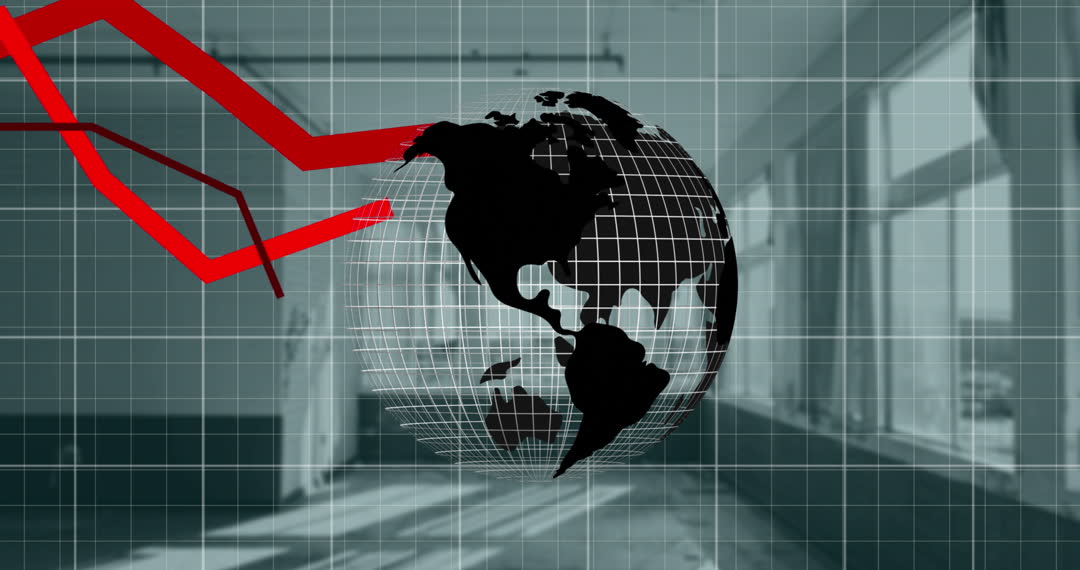 - Global Economic Decline Depicted with Red Line Graph on Grid Globe