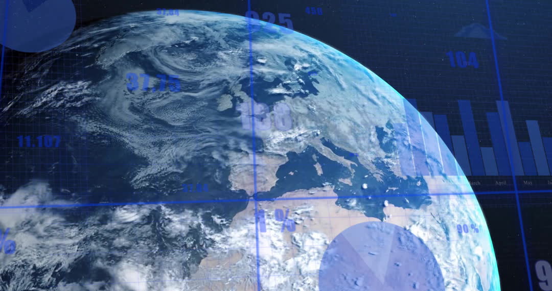 Depicting an advanced digital world, this video features the Earth with an overlay of financial data. Suitable for illustrating global finance, technology-driven economic trends, and financial data visualization in marketing materials or educational content.
