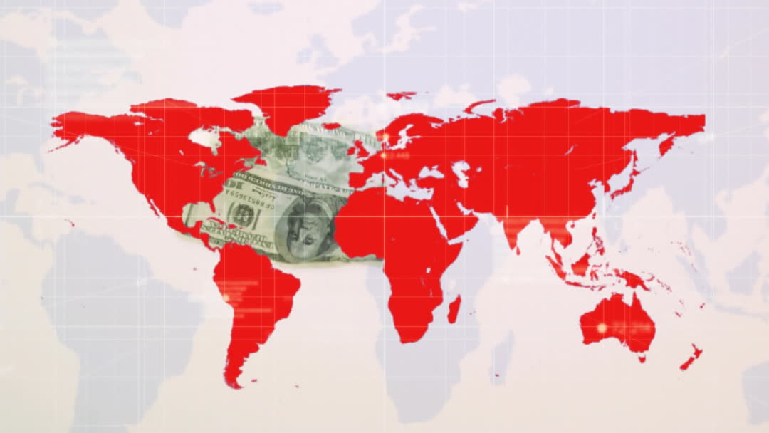 This animated visual combines financial themes, featuring an overlay of US currency graphics on a world map. Engaging for presentations focused on global economy discussions, international finance strategies, or investment opportunities. Ideal for illustrating concepts like international trade or economic dynamics.