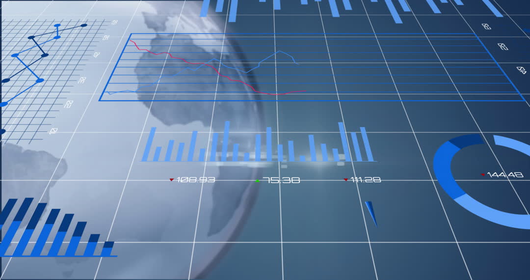- Global Financial Data Analysis Concept with Histogram and Globe Overlay