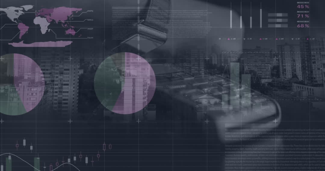 This video showcases an engaging blend of financial data visualizations merged with a dynamic cityscape. The visual includes complex graphs and global economic statistics, encapsulating a sense of modern business technology intertwined with urban life. This visual can effectively be used for presentations related to market analysis, software tech showcases, or educational purposes highlighting the intersection of global economic data and urban environments.