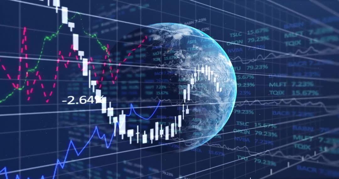 - Global Financial Data Animation with Digital Grid and Earth