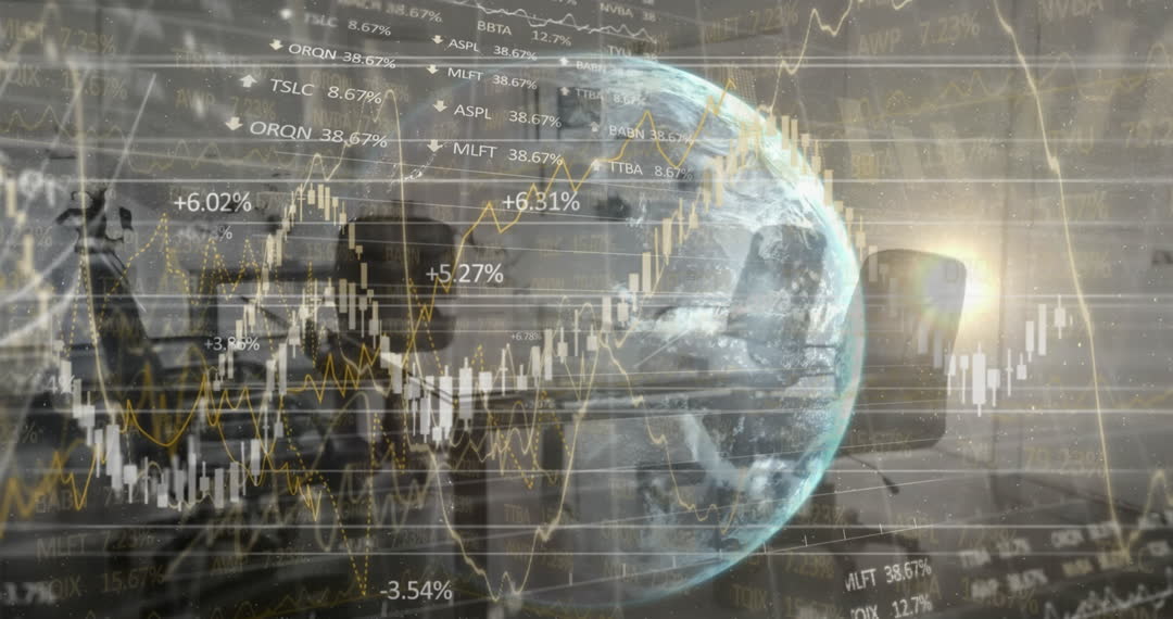 Animation shows dynamic financial data interspersed with global videory, perfect for showcasing global market trends, investment opportunities, or technological advancements in finance. Useful for financial news segments, business presentations, and economic reports.
