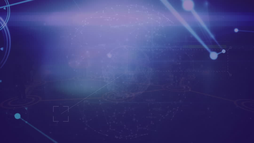 Abstract animation showcasing a network of connections with a rotating digital globe against a blue background. Useful for presentations on global networking, business technology, and digital transformation themes. Ideal for backgrounds, headers in tech-related webinars and corporate projects involving virtual connectivity or futuristic technology concepts.