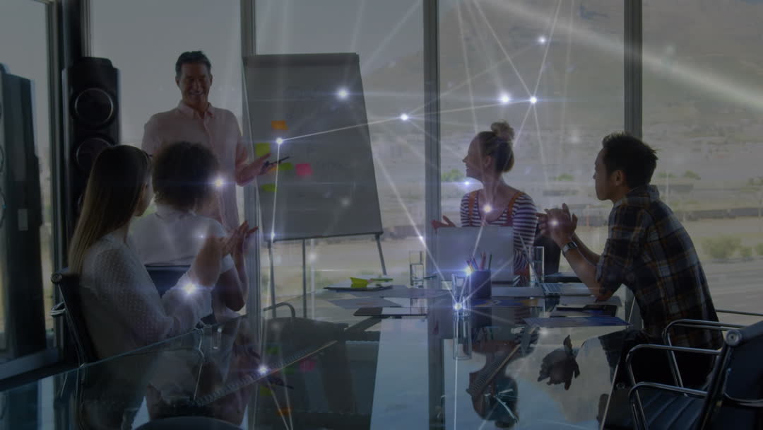 <a target="_blank" href=https://pikwizard.com/video/global-network-overlaying-business-team-in-meeting/69e012b81631f96f4a45111920d7951e/>PikWizard</a>