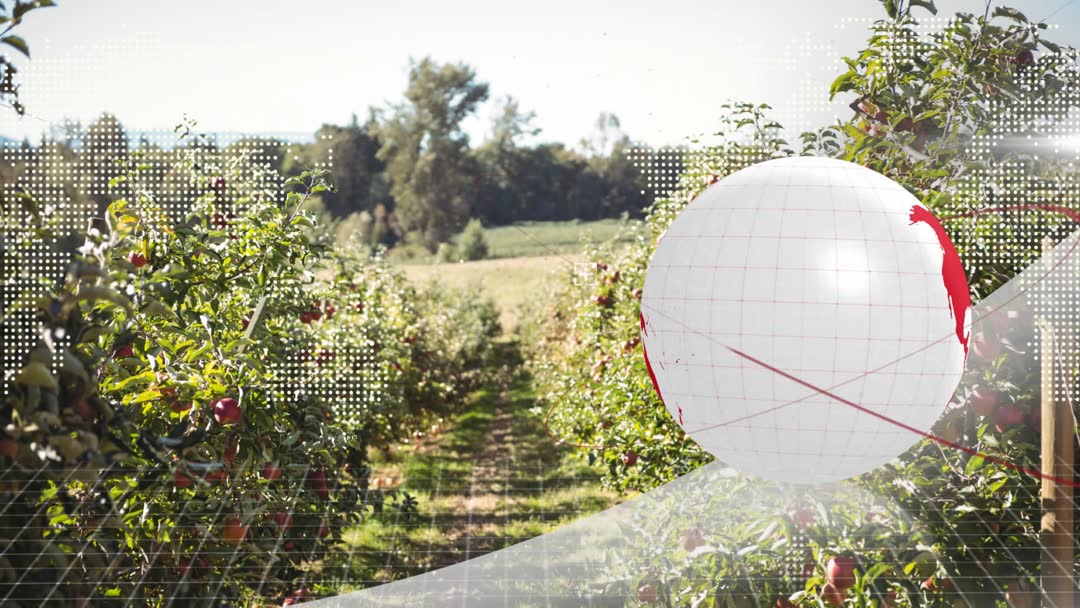 Orchard demonstrates merge of traditional farming with modern technology as a 3D globe and digital mapping overlay depict connectivity and communication networks. Useful for illustrating advancements and innovation in agriculture, the video highlights future farming as smart systems interact in rural environments. Ideal for content focused on sustainable development, technology integration, and the digital transformation of agriculture.