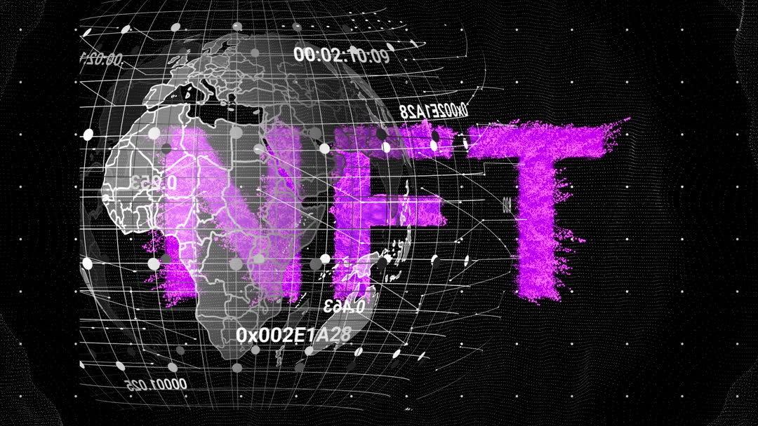- Global NFT Technology Concept with Digital Globe and Data Streams