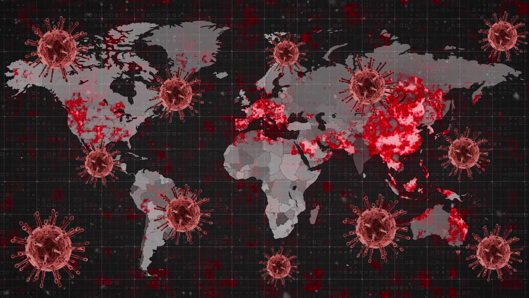Global Pandemic Visualization with Virus Cells on World Map Video
