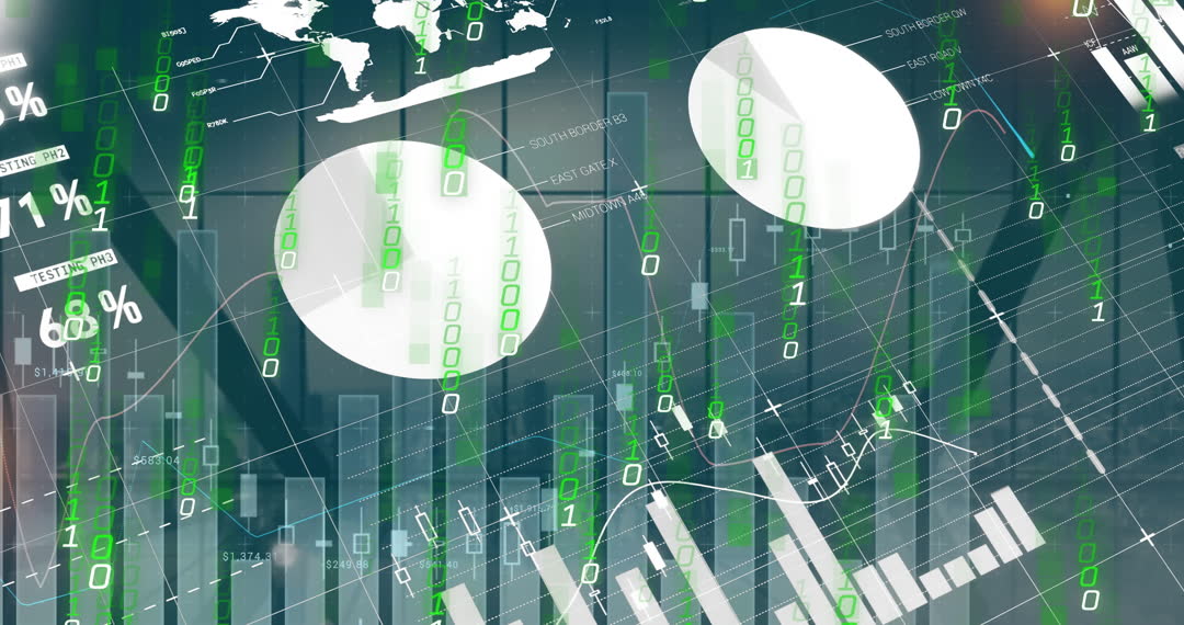 Abstract visualization depicting influence between global commerce and big data. Suitable for presentations on logistics, shipping management, and data analysis. Used for digital resources or articles focusing on economic trends or technology intersecting with logistics.