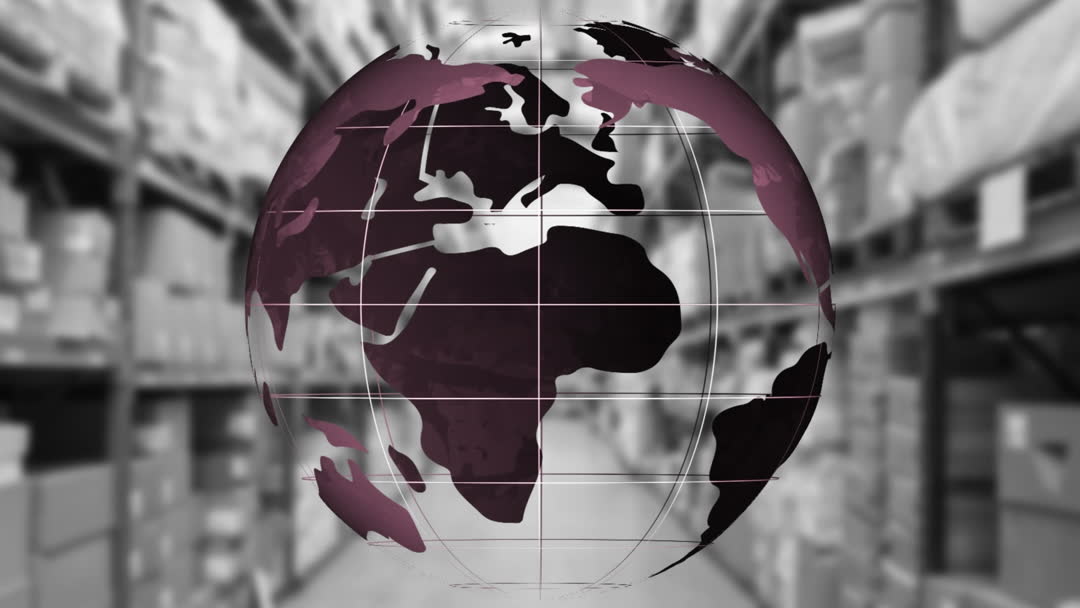 Animation shows a digital globe overlay within a busy warehouse environment. This concept highlights global logistics, illustrating the processes of shipping and supply chain management. Ideal for use in presentations or articles centered on global commerce, corporate logistics solutions, or showcasing advancements in digital supply chain technologies.