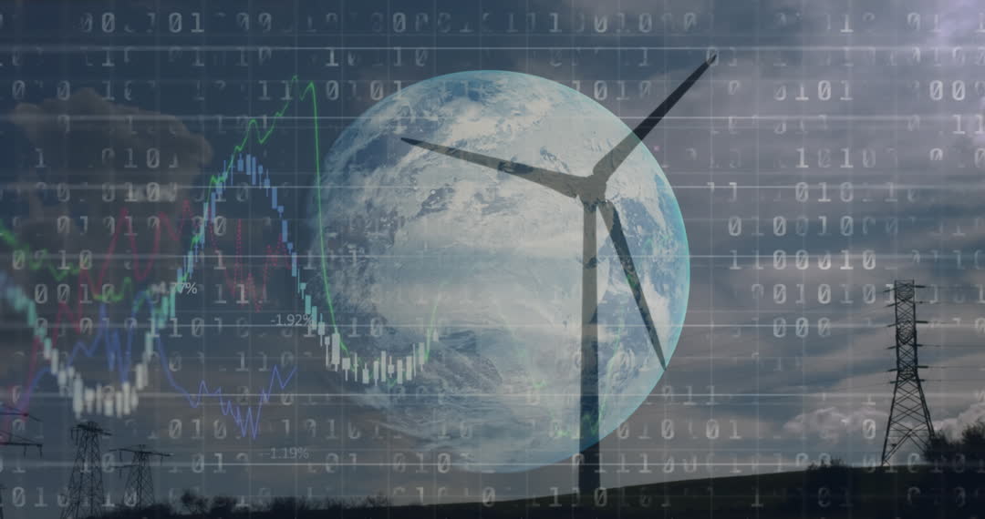 - Global Sustainability: Wind Turbine Over Financial Binary Matrix