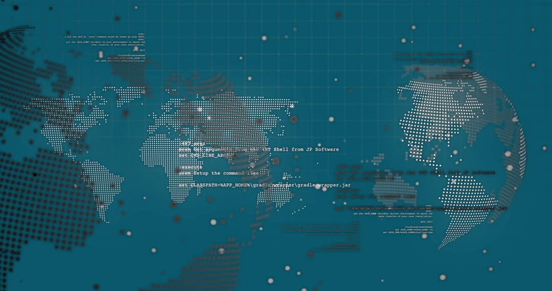 This graphic combines elements of data processing with a digital representation of a world map, lending a modern and technological feel. Useful in presentations and media focusing on global business trends, digital innovations, and data analytics. Suitable for conveying themes of interconnectedness and technological advancement in documents, marketing, and educational materials.
