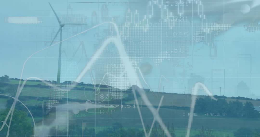 The animation blends digital data graphs and processing overlays against a cityscape, symbolizing technological advancements. Ideal for illustrating concepts related to global technology innovations, digital statistical analysis, and the interaction between urban environments and data industries. Useful for presentations on business analytics, future city planning, smart technologies, and data-driven decision-making.