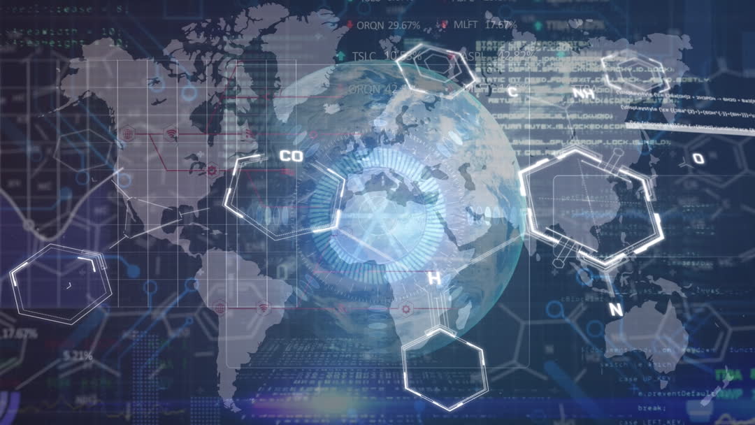 Global Technology Interface with Chemical Formulas and Data Video