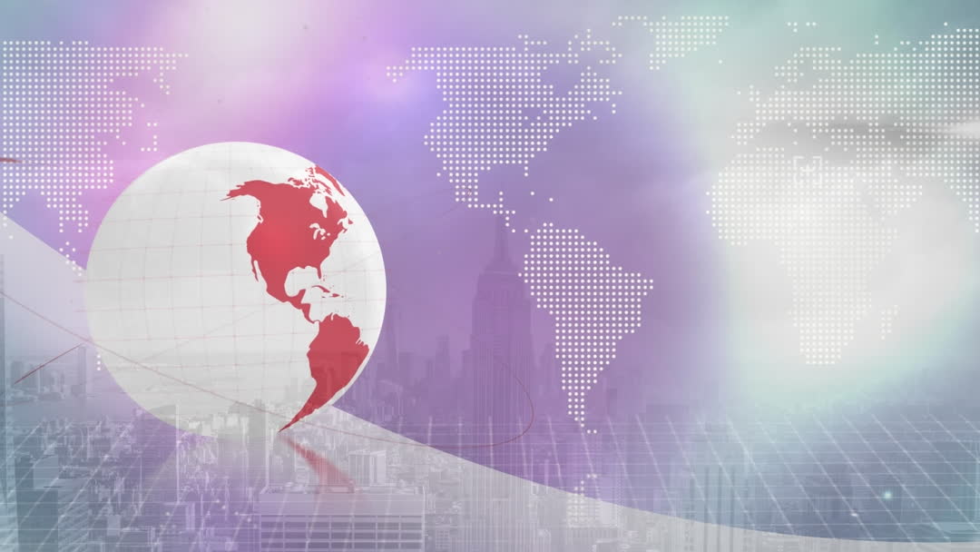 Dynamic video depicts a stylized globe against a subtle cityscape, illustrating the concept of global business and data processing. Ideal for use in promotional materials for tech companies, financial startups, and business presentations highlighting international market trends or innovations in data technology.