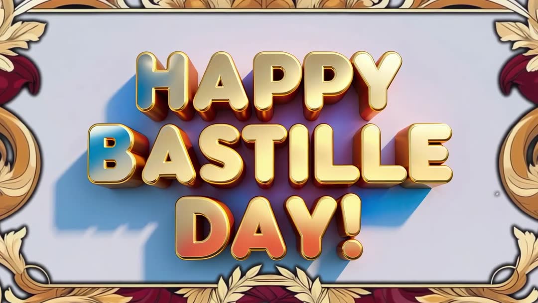 - Glossy 3D Text Celebrating Bastille Day Elegance