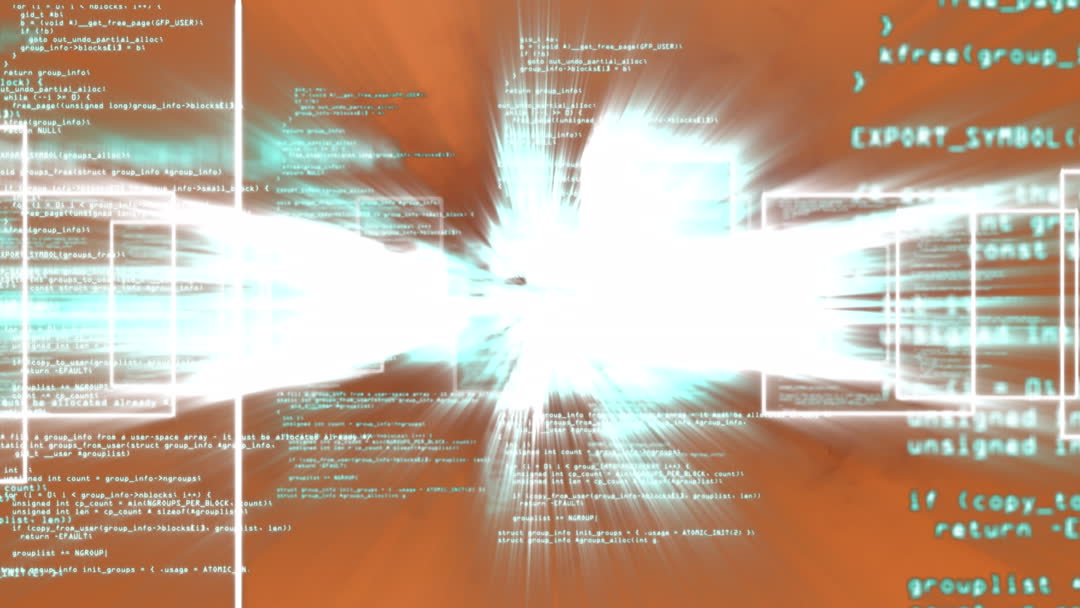 Features rapidly moving lines of computer code intertwined with a bright, glowing background. Ideal for illustrating technology concepts, global network connections, or digital information flow in presentations, tech blogs, and cybersecurity discussions.