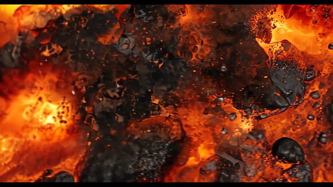 Glowing Ember Coals in Fiery Heat Generated by AI Video