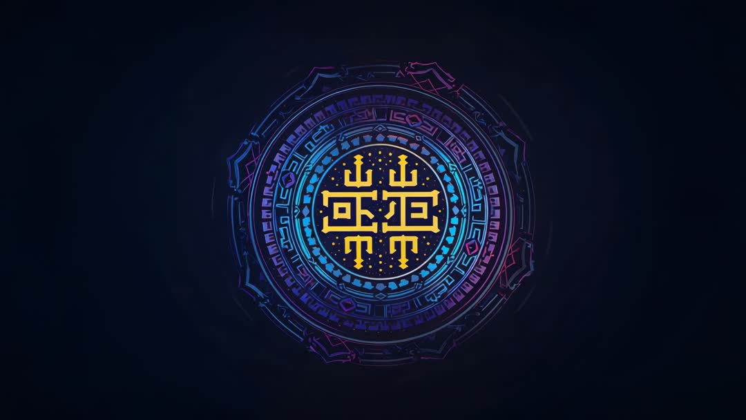 AI Generated Image. Video showing rotating ornate circular emblem with pulsing neon rings on deep navy field. Central gold sigil surrounded by layered techno-ornamental glyphs, colors shifting between electric blue and magenta while radial motion creates hypnotic, loopable effect. Visual mood balancing mystical and high-tech tones, providing strong focal point for motion design. Ideal for title sequences, sci-fi trailers, game intros, streaming overlays, VJ loops, album visuals, brand intros for tech or crypto, mystical product launches. Editors can loop seamlessly for ambient background or sync slow zoom and glow ramps for dramatic reveals. Suggested post work includes color grading to match brand palette, overlaying particle sparks, adding soft vignette, applying blend modes for compositing, and placing lightweight typography above or around central sigil to preserve focus. Deliverables recommendation: 4K video with alpha matte option for easy layering and compositing.
