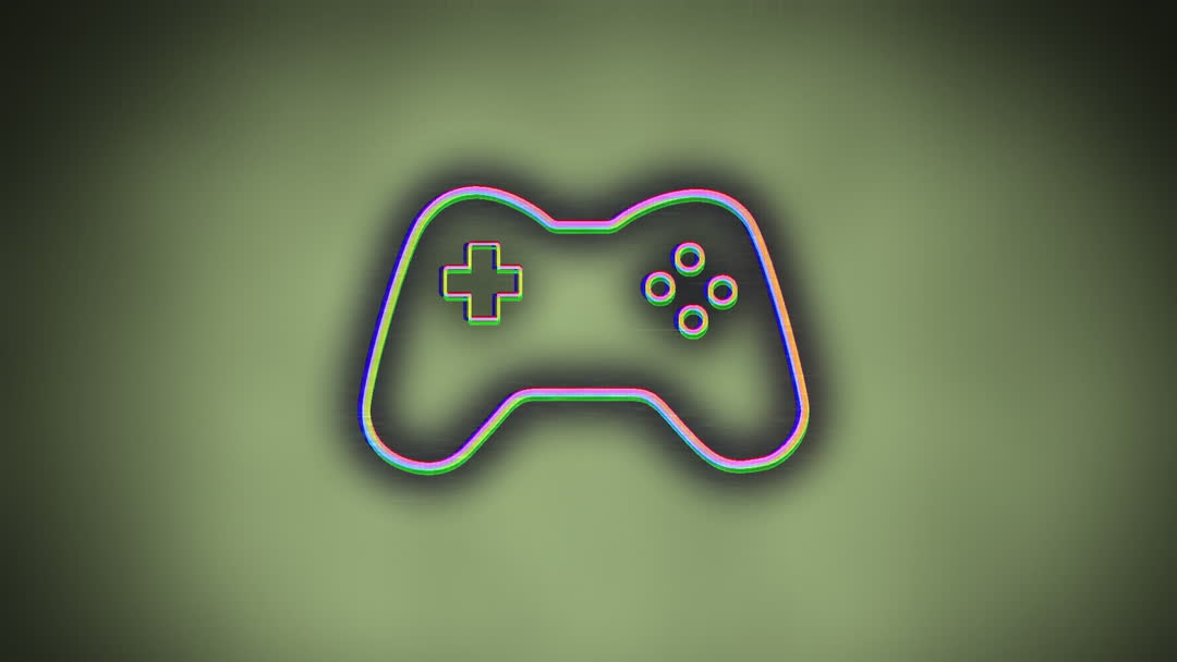 Outlined gamepad icon on a green background, utilizing neon-like colors and a glowing effect. This abstract animation characterizes modern gaming culture and technology's influence. Perfect for use in gaming blogs, promotional materials, background visuals for streams, or any content themed around video games.
