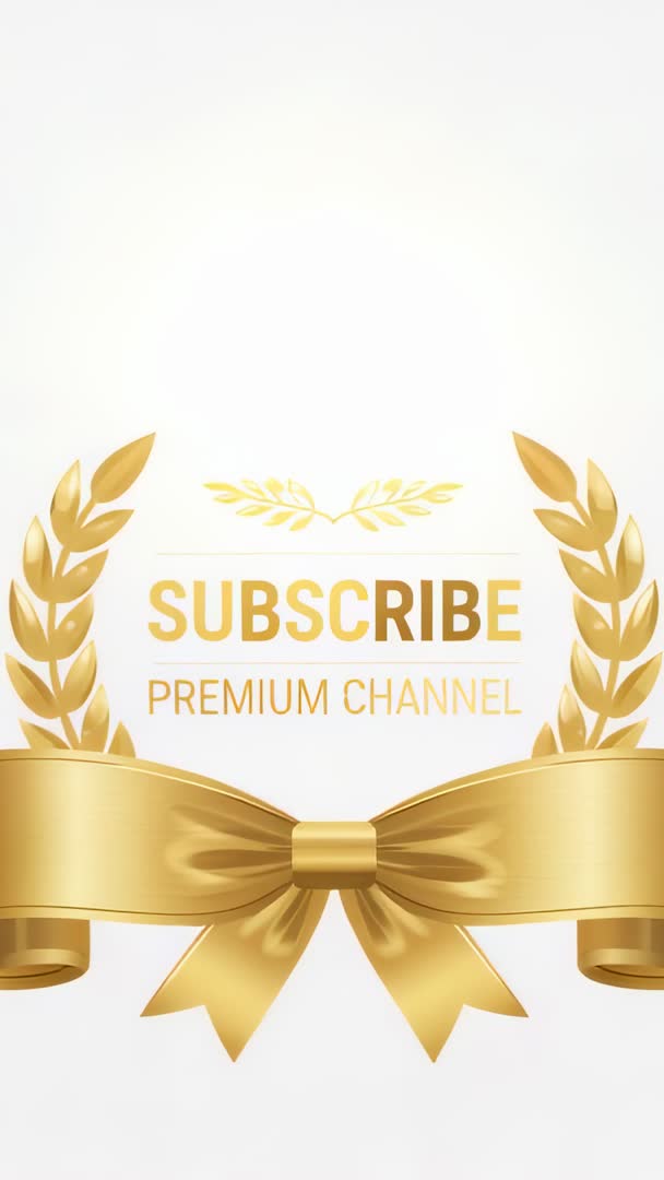 AI Generated Video. Vertical video showing glowing gold laurel wreath and wide metallic ribbon pulsing on clean white background, bold center text reading SUBSCRIBE PREMIUM CHANNEL. Serving as YouTube channel intro, premium membership promo, end screen, or vertical mobile ad for creators and brands. Pairing with elegant music, subtle shimmer sound, or voiceover call to action to boost engagement. Allowing easy customization of text, color, duration, and loop for consistent branding. Ideal for promotional reels, channel upgrades, subscription campaigns, and premium content announcements.