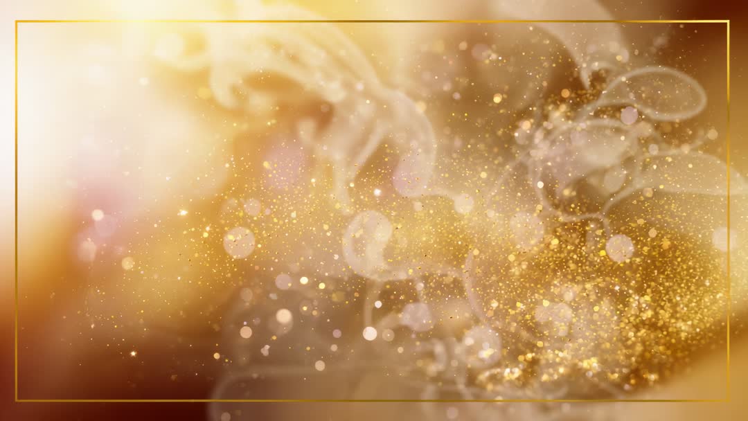 AI Generated Video. Showing glowing gold particles drifting through soft smoky wisps inside thin gold border, creating cinematic bokeh, glittering shimmer, and warm light flares. Perfect for luxury branding, celebration openers, holiday promotions, wedding titles, and social media reels. Enhancing title sequences, product reveals, website hero banners, and event motion graphics with elegant moving backdrop suitable for text overlay and logo placement. Providing loop-friendly composition and easy color grading for brand integration; deliverable options include 4K resolution and 30/60 fps source. Licensing-friendly asset for commercial campaigns, broadcast promos, streaming intros, and print motion stills.