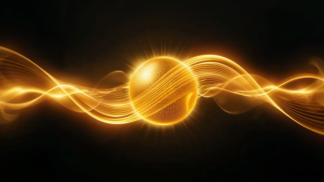 AI Generated Image. Video showing glowing golden orb pulsing, radiating soft halo, and interacting with twin ribbons of luminous lines weaving horizontally across dark void. Composition featuring high contrast warm-gold palette, smooth flowing motion, and generous negative space for text or brand elements. Motion is loop-friendly and presenting elegant wave transitions that are suitable for continuous playback. Ideal use cases include branding sequences, logo reveal, title opener, luxury product promo, tech demo background, broadcast bumper, VJ visuals, website hero loop, and social media motion posts. Post-production notes: allowing overlay of logo and lower-third text, supporting color grading to match brand palette, and recommending subtle particle blur or soft vignette to enhance depth. Export suggestions: deliver as looping MP4 or MOV, provide high-resolution 4K master for large displays, and include version with transparency for direct overlay in edits.