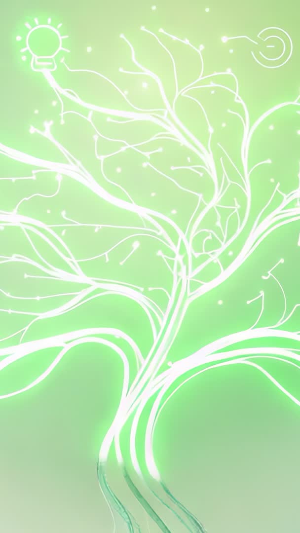 - Glowing Green Branching Network Connecting Light Bulb and Target Arrow in Vertical Video