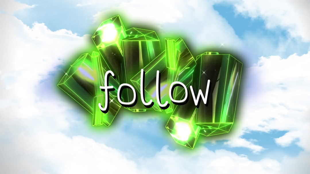 - Glowing Green Crystals with Follow Text on Blue Sky Background