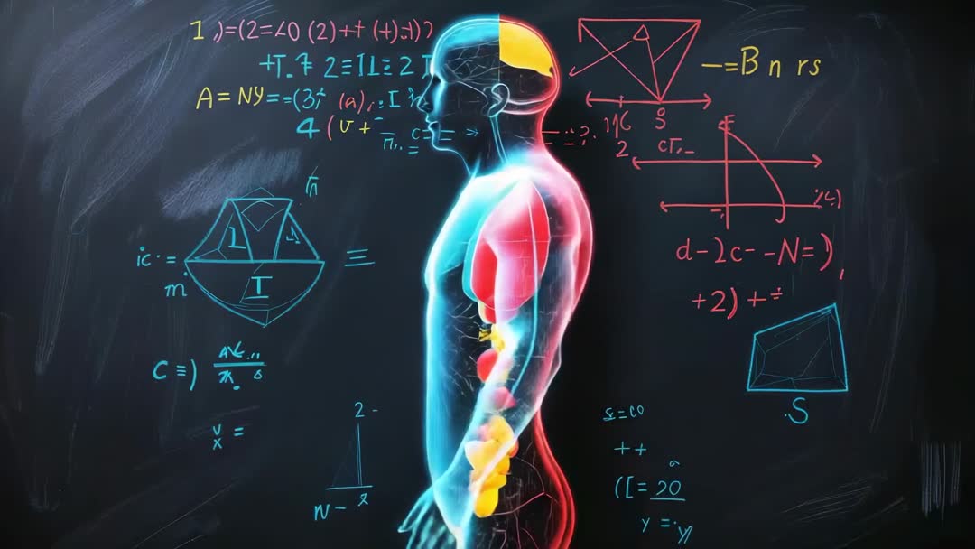 - Glowing Human Anatomy Model Over Chalkboard with Mathematical Formulas