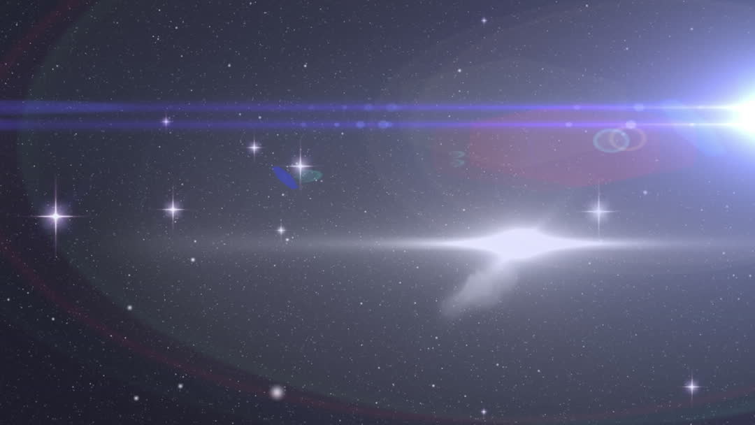 Animated scene featuring a bright glowing light set against a star-studded background. Cosmic elements create a sense of vastness and wonder, inviting use in theme,s related to science fiction or astronomy projects. Ideal for backgrounds in digital artwork, presentations, or multimedia projects focused on space or cosmic exploration.