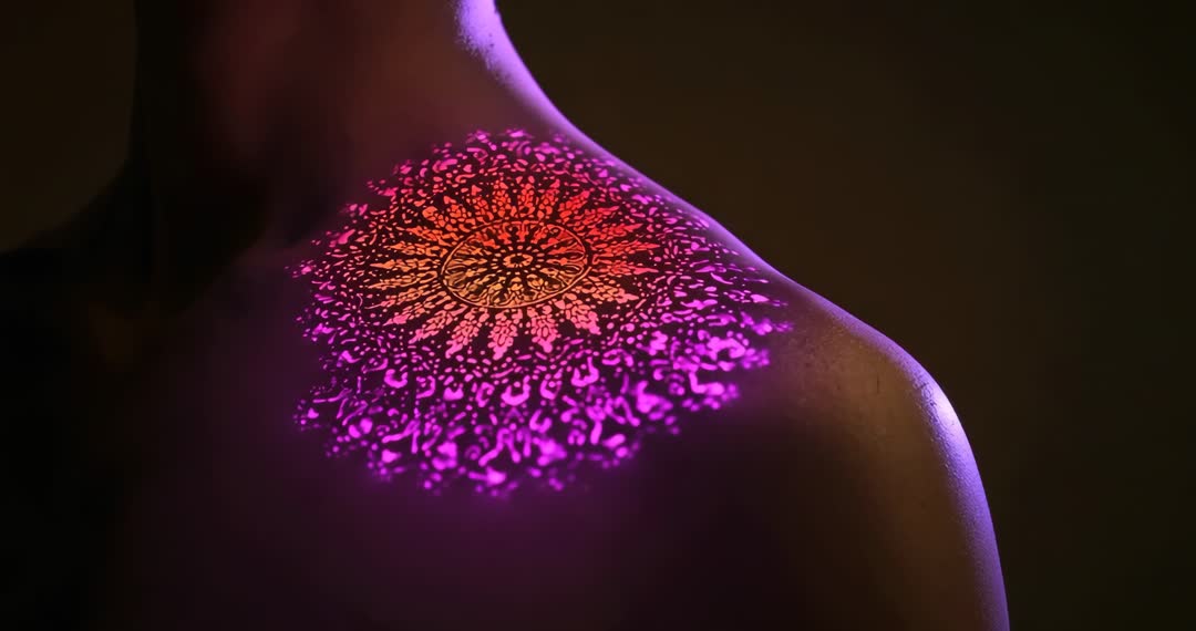 - Glowing Mandala Projection on Back with Shimmering Effects