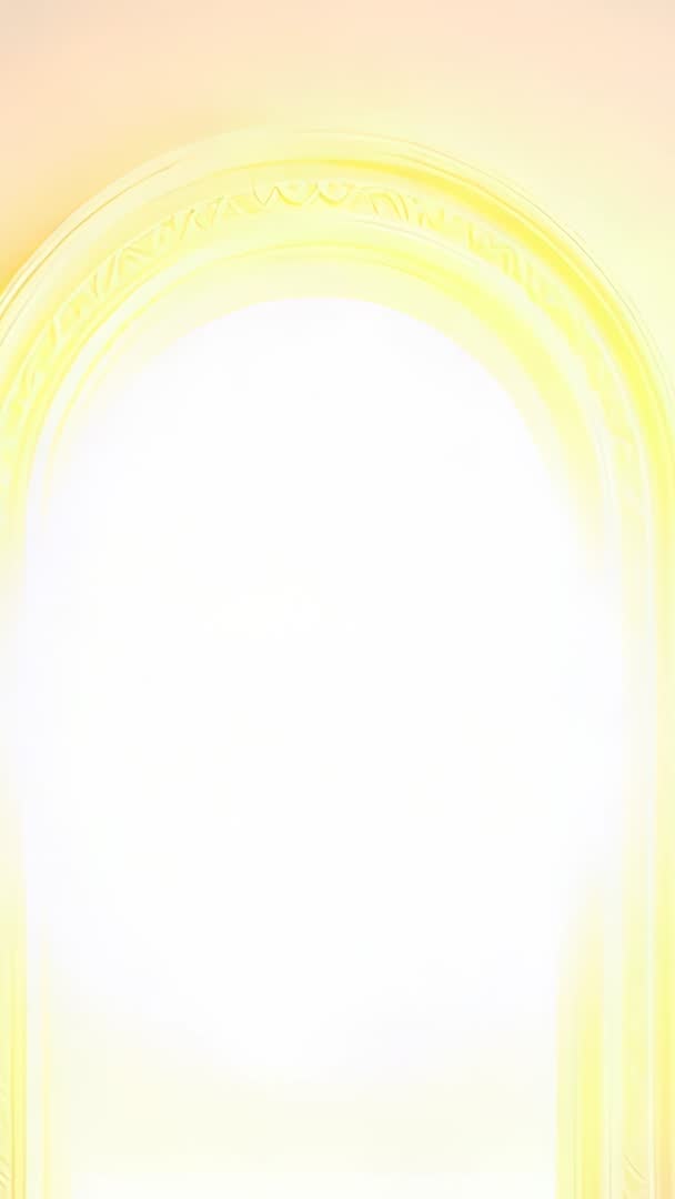 AI Generated Image. Featuring ornate arch with decorative plaster molding and soft cream wall, vertical frame showing glowing orb appearing and growing into warm golden sun. High-key illumination creating halo effect and soft gradients, delivering calm minimalist backdrop for meditation and spiritual content. Slow growth motion and minimal composition providing smooth area for title overlays, captions, and lower-thirds in social media stories and mobile ads. Loop-friendly clip offering seamless transition for app splash screens, brand heroes, event intros, and atmospheric cinematic scenes. Color palette warm cream and gold, suitable for wellness, luxury interiors, seasonal promotions, and greeting visuals.