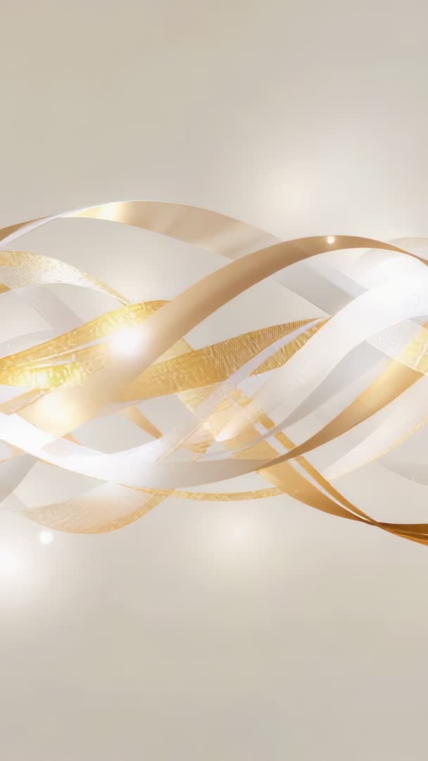 AI Generated Video. Vertical looping video showing gold and pearl-white ribbons undulating across soft beige backdrop, producing soft glows and lens flares. Metallic bands featuring subtle texture and floating light orbs, creating elegant abstract motion suitable for luxury and premium visual projects. Perfect for luxury brand intros, wedding and event promos, product reveal backgrounds, social media vertical ads, mobile wallpapers, and elegant title backgrounds. Use as hero background for jewelry and cosmetics, overlay text or logo in dark charcoal or deep navy for high contrast. Loop seamlessly for extended sequences, crop to square or horizontal for web banners, lower brightness for improved text legibility. Pair with ambient orchestral or minimal piano score to enhance refined mood. Export in 1080x1920 or 4K vertical for high-resolution displays and mobile-first campaigns.