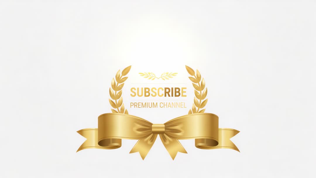 AI Generated Image. Animated clip showing gold ribbon and laurel wreath unfurling and revealing SUBSCRIBE and PREMIUM CHANNEL lettering on clean white background. Featuring glossy gold bow, symmetrical laurel, soft glow and studio-style spotlight. Serving channel intros, subscription drive promos, premium membership announcements, award reveal segments and streaming end screens. Working well as logo reveal, lower third overlay, video bumper, ad creative and social media clip. Pairing with celebratory music and animated confetti for high-impact reveal. Ideal for overlaying on existing footage or graphics, adding branded CTA to end screens, or creating premium membership promos. Delivering upscale, elegant look for luxury brands, influencers and corporate channels. Tagging as AI-generated for asset management and search filtering.