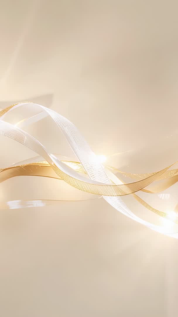 AI Generated Image. Video showing golden and white translucent ribbons waving and sliding across warm beige gradient. Soft glints and bokeh highlights accentuating flowing motion and subtle light flares. Smooth kinetic bands creating elegant backdrop for text and logo placement. Ideal for luxury product promo, event opener, wedding intro, beauty and fashion branding, holiday greeting, social media vertical ad, mobile wallpaper, and corporate presentation. Customization-friendly for color grading, text overlay, logo reveal, lower-third graphics, and looped background use.
