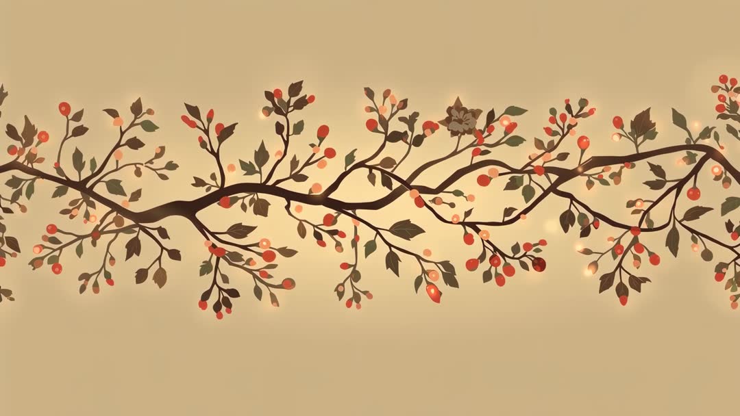 AI Generated Video. Looping animation showing golden berry branch swaying across beige backdrop with soft glowing lights and subtle shadow accents. Focusing on gentle motion and warm palette for calming, elegant visual. Suitable for header loops, website banners, social media reels, seasonal ads, greeting card animations, event invitations, in-store displays, and digital signage. Pairing with warm typography, overlaying text, subtle parallax, or slow zoom for added depth. Conveying autumnal, festive, and organic themes for lifestyle brands, boutiques, wellness studios, and holiday promotions. Providing seamless loop and horizontal 16:9 composition for easy cropping to square or vertical formats. Including color palette suggestions: warm beige, amber, deep brown, muted green, soft coral.