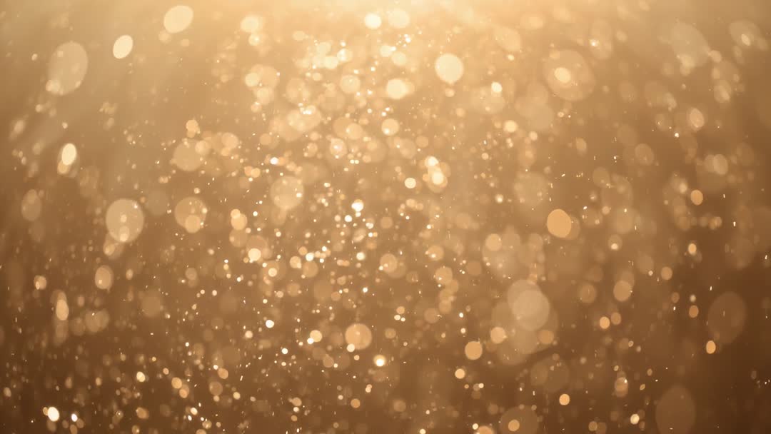 - Golden bokeh particles drifting in warm backlight, shimmering glitter dust motion loop