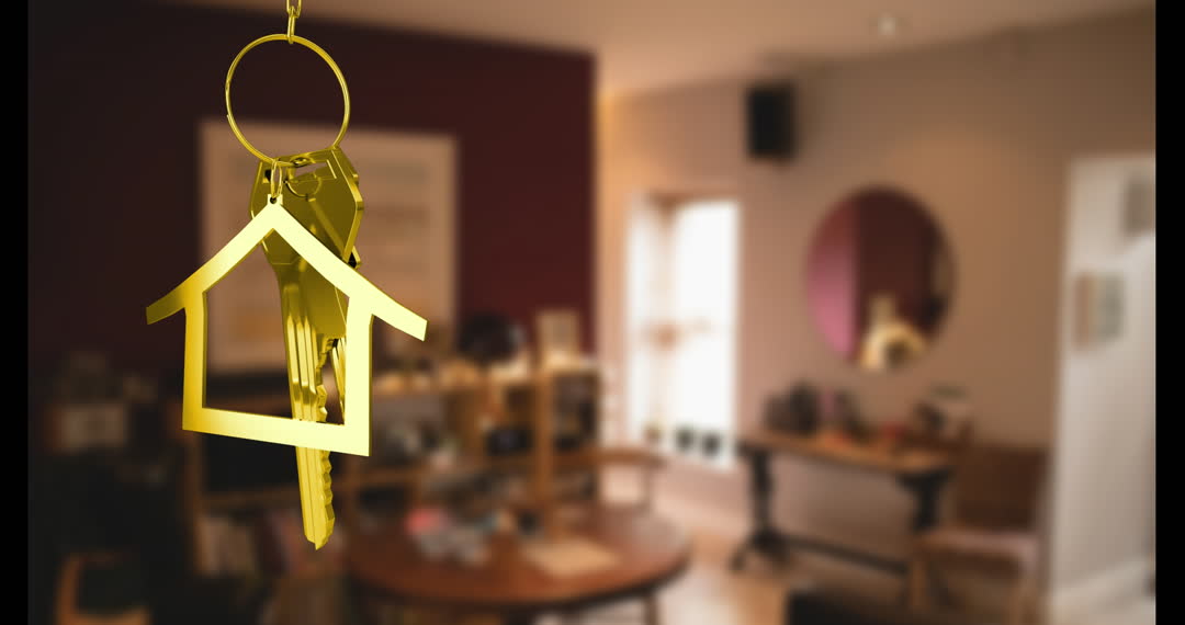 - Golden House Key Animation with Blurred Interiors in Background