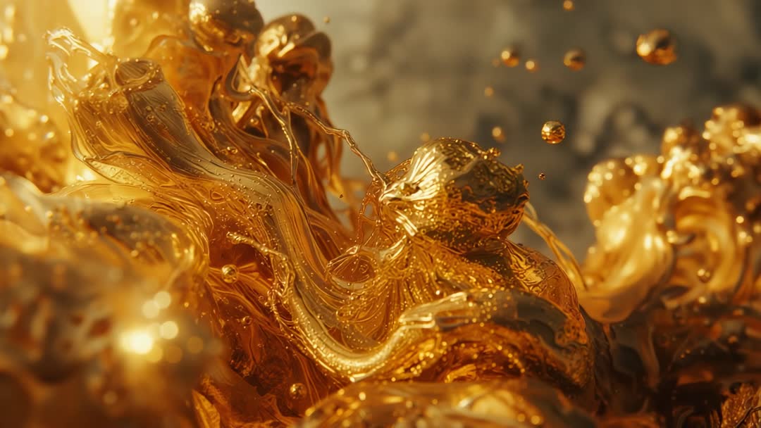 Golden Liquid Dynamics in Motion with Droplet Effect Video