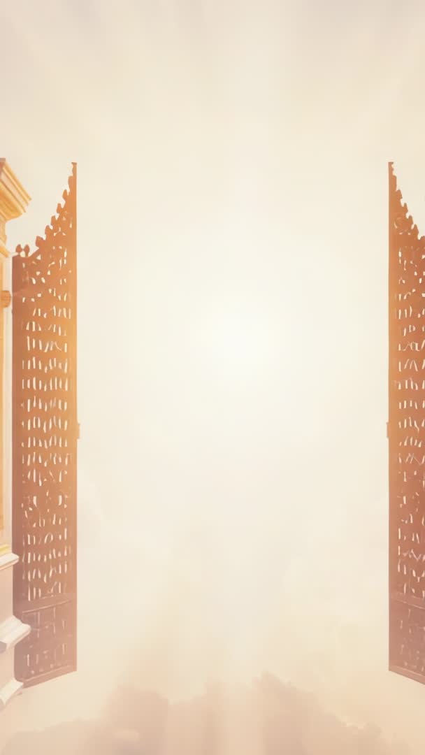 - Golden palace gates swinging open into radiant light revealing heavenly void vertical video