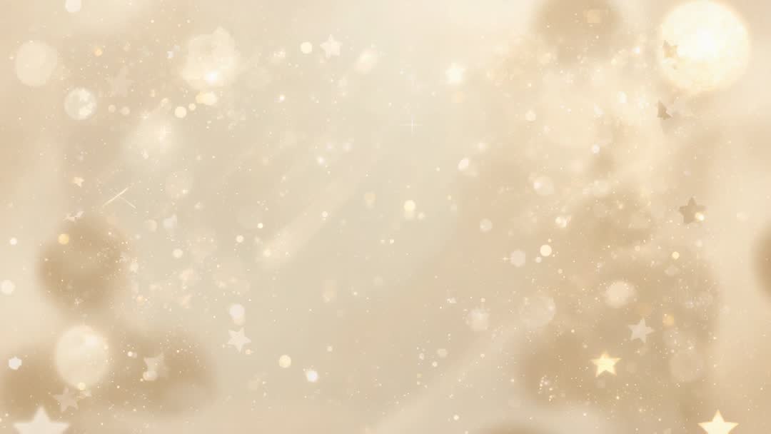 - Golden particle field animation featuring festive bokeh, star confetti and soft shimmer