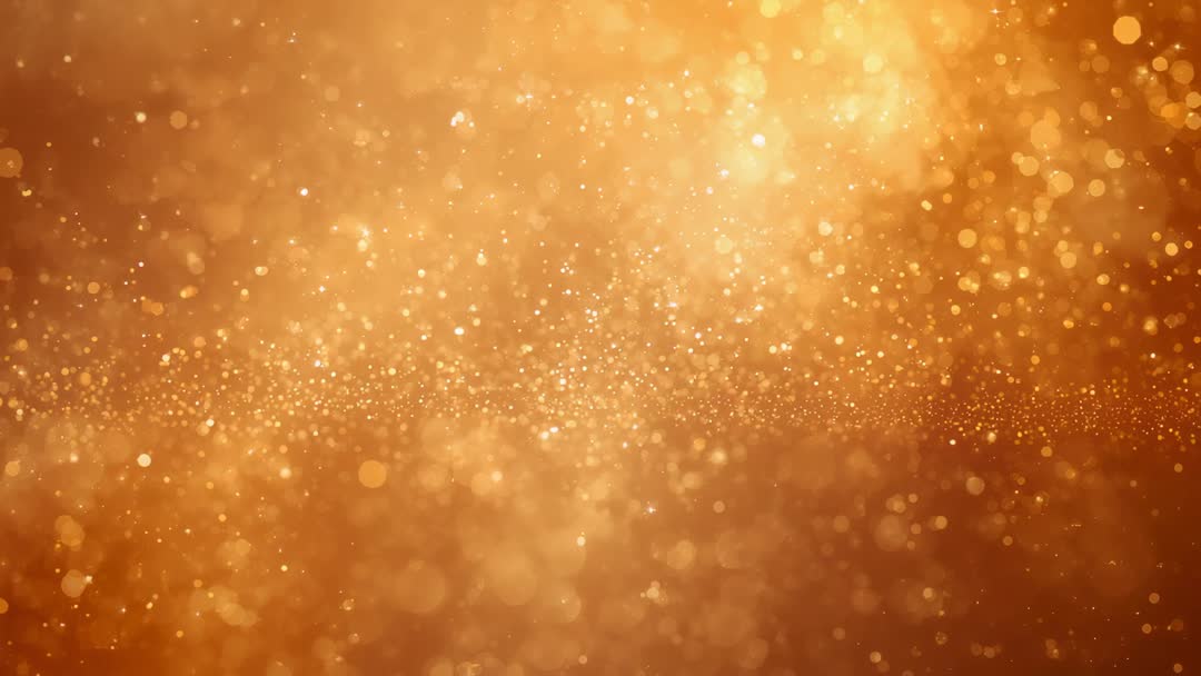 AI Generated Video. Warm golden particles drifting and twinkling across frame, creating soft bokeh and shimmering dust layers. Cinematic loop footage featuring amber glow, floating orbs, and subtle sparkles for mood enhancement. Ideal for holiday and celebration content, luxury branding, product reveal, title intro, social media ad, wedding opener, event promo, or background for presentations. Use for logo reveal, lower third, hero banner, transition overlay, or texture layer in motion graphics. Color grading and speed adjustments working well to match brand palette and pacing. Looping playback and alpha composite options enabling seamless integration into projects. Deliverable formats: high-resolution MP4 or MOV, variable duration and frame rate depending on source. AI-generated visual style offering consistent grain and stylized light.